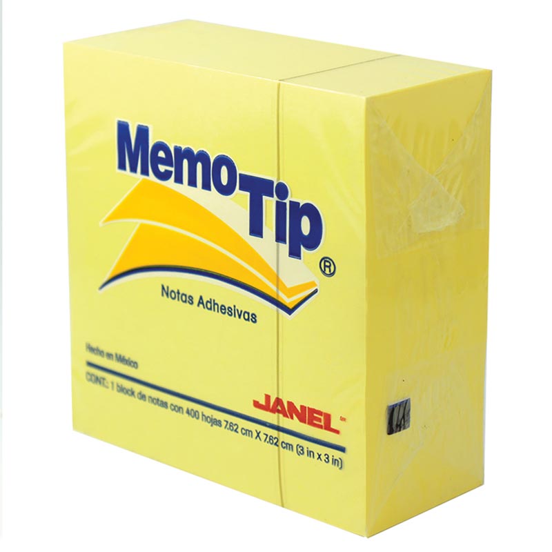 NOTA ADHESIVA MEMO TIP 3X3 COLOR AMARILLO 400 HOJAS JANEL